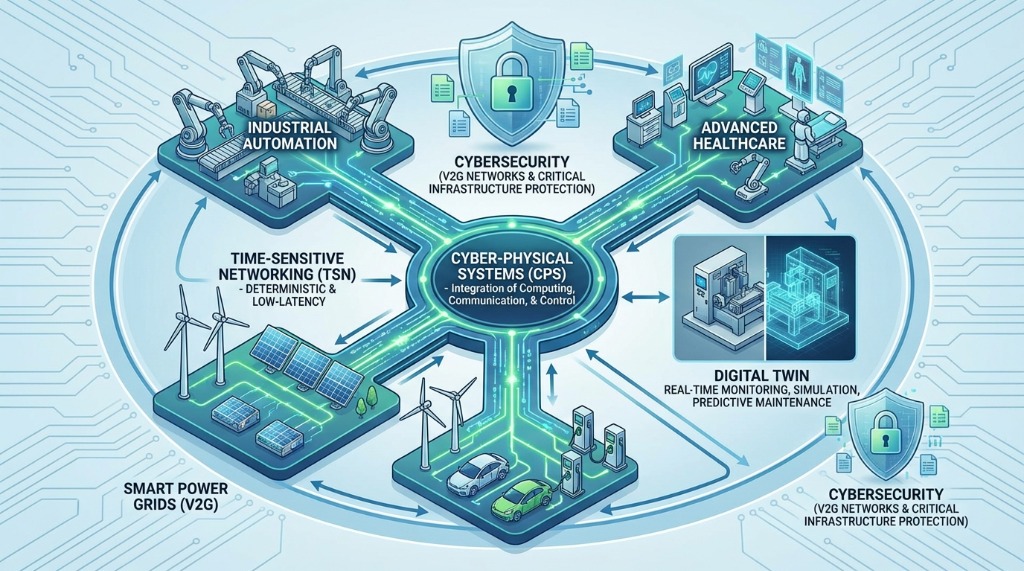 Cyber-physical systems (CPS) refer broadly to the next generation of engineered systems that require efficient integration of computing, communication, and control technologies achieving stability, robustness, reliability and optimized performance in many important application domains, such as industrial automation, advanced healthcare, and smart power grids. A critical enabler for these systems is Time-Sensitive Networking (TSN), which ensures deterministic and low-latency communication essential for real-time control loops (Zanbouri et al., 2025). Furthermore, the concept of the Digital Twin—a virtual representation of a physical system—is revolutionizing CPS by enabling real-time monitoring, simulation, and predictive maintenance, thereby enhancing the adaptability and resilience of physical operations. Additionally, ensuring cybersecurity is paramount, particularly in critical infrastructure like vehicle-to-grid (V2G) networks, to protect against evolving threats and ensure system integrity (Razzaque et al., 2025).