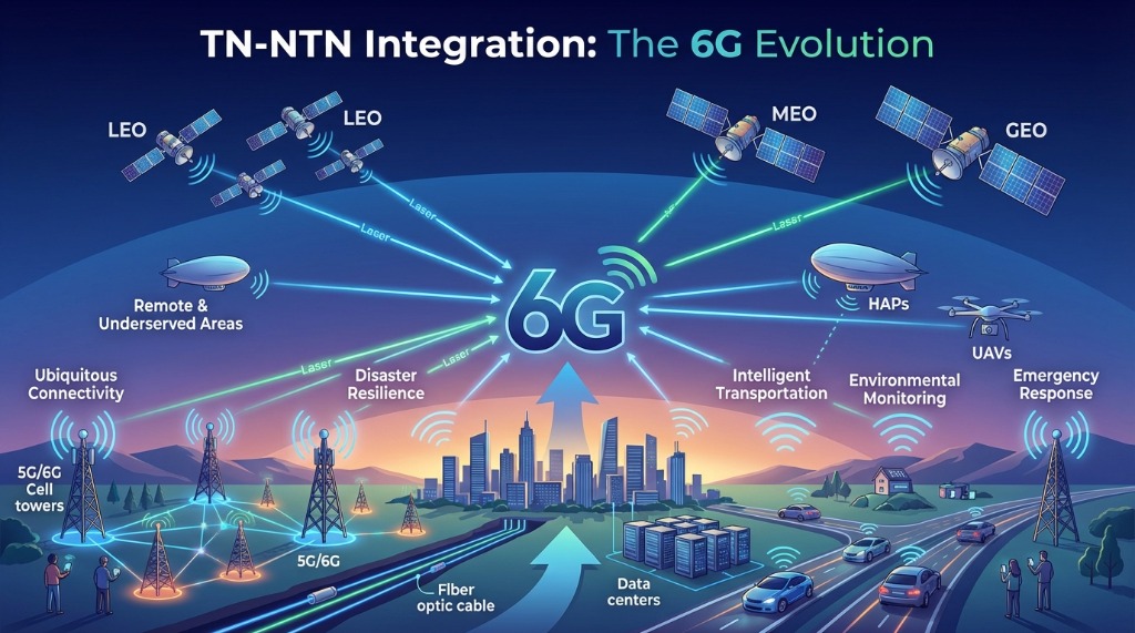 The integration of Terrestrial Networks (TN) and Non-Terrestrial Networks (NTN) is a pivotal evolution in next-generation communication systems (6G) (Noor-A-Rahim et al., 2022). This convergence aims to provide ubiquitous, reliable, and resilient connectivity by leveraging the strengths of both ground-based infrastructure and space-borne assets like satellites and Unmanned Aerial Vehicles (UAVs). By seamlessly unifying these diverse network layers, we can extend coverage to remote and underserved areas, ensure service continuity during natural disasters, and support high-mobility applications where terrestrial coverage is intermittent or unavailable. This holistic approach is essential for realizing the vision of global connectivity and enabling transformative applications in intelligent transportation, environmental monitoring, and emergency response.